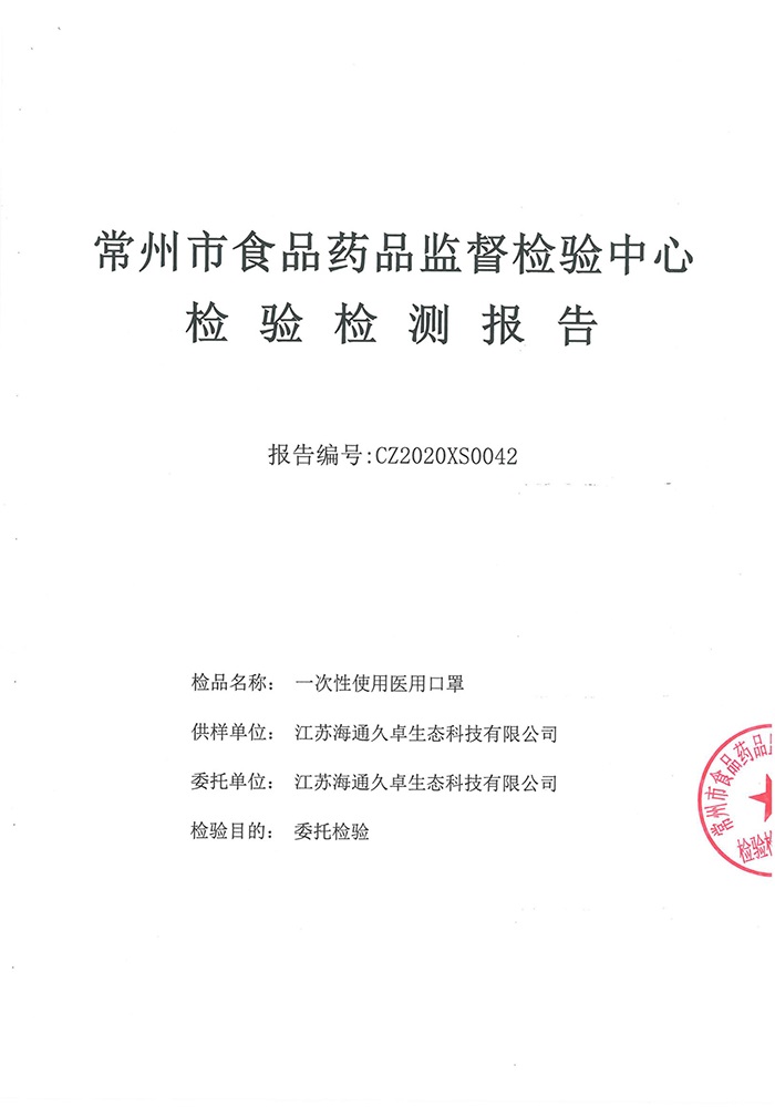 YY/T0969-2013检验报告- 一次性使用医用口罩