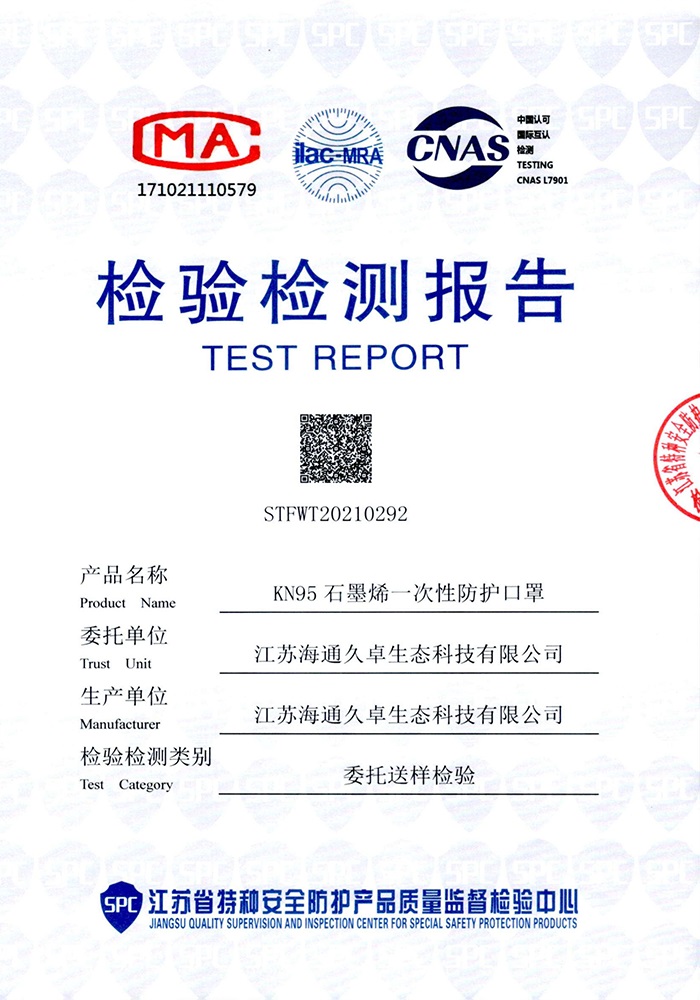 GB2626-2019检测报告-石墨烯一次性防护口罩(折叠成人型)