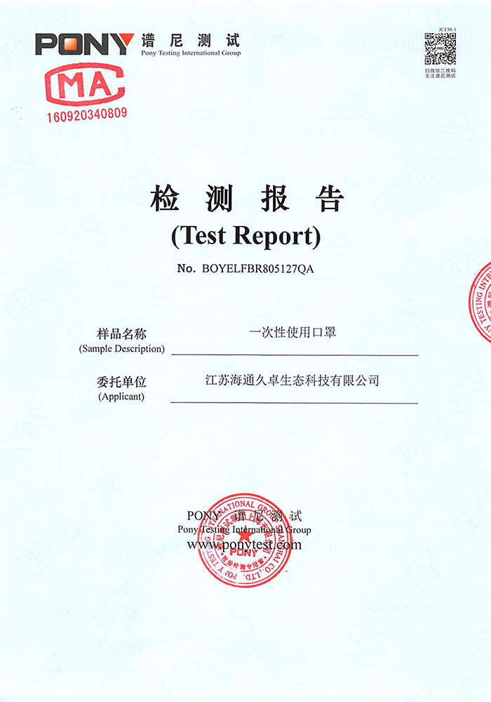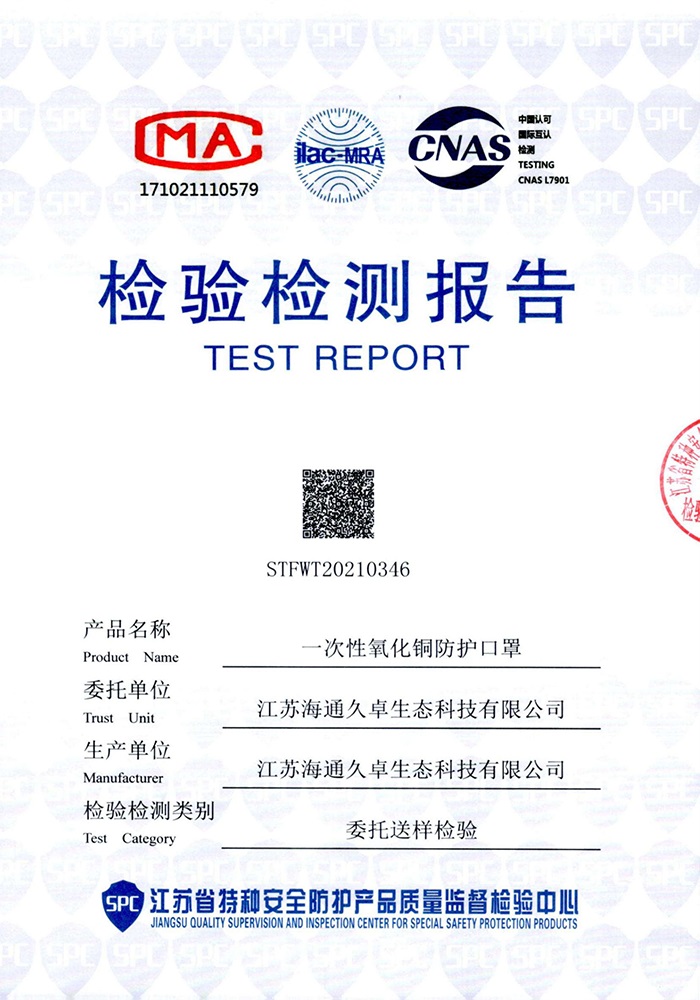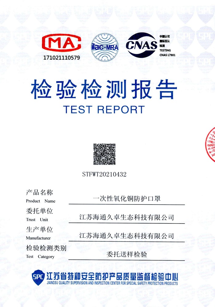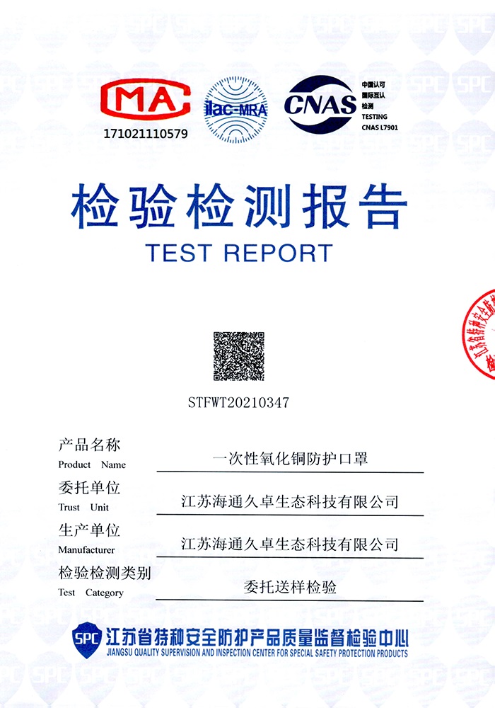 GB32610-2016检测报告-一次性氧化铜防护口罩(平面成人款)