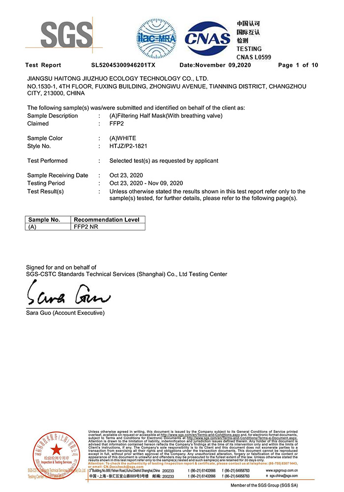 SGS FFP2检测报告- 折叠口罩