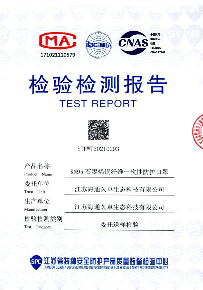 GB2626-2019检测报告-石墨烯铜纤维一次性防护口罩(折叠成人型)