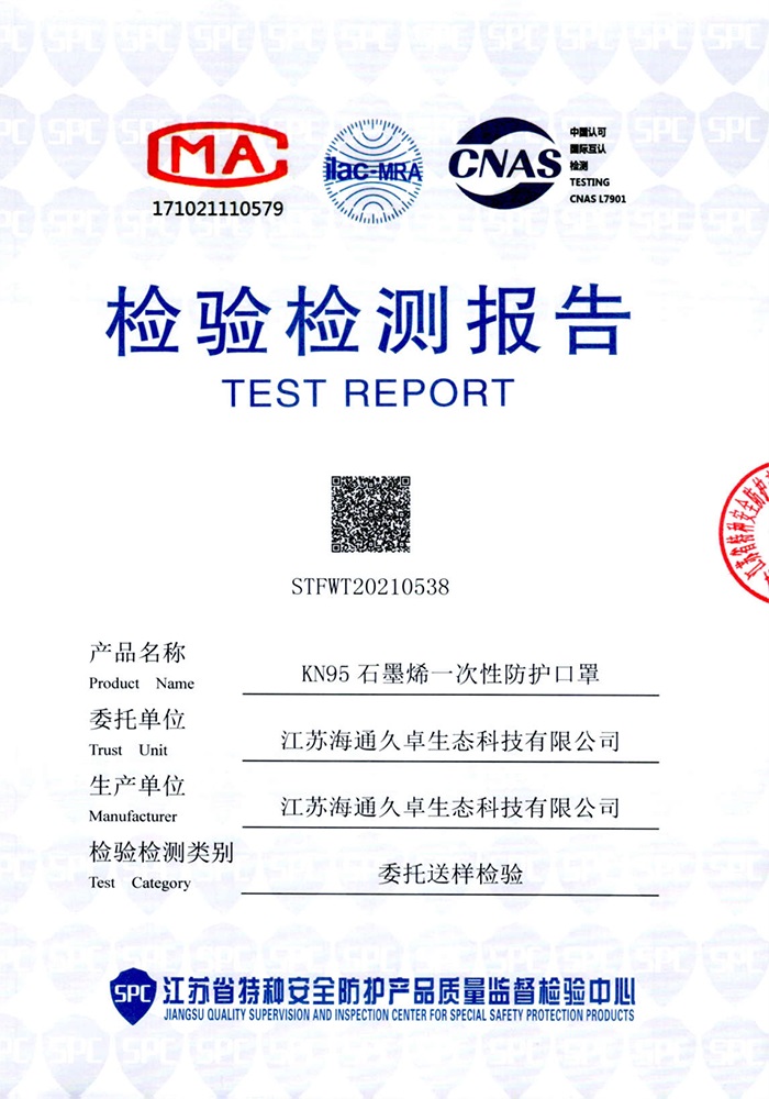 GB2626-2019检测报告-石墨烯一次性防护口罩(折叠成人型)
