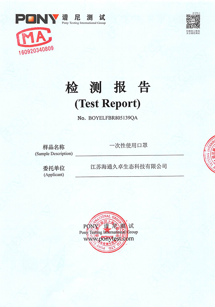GB32610-2016检测报告-一次性氧化铜防护口罩(平面成人款)